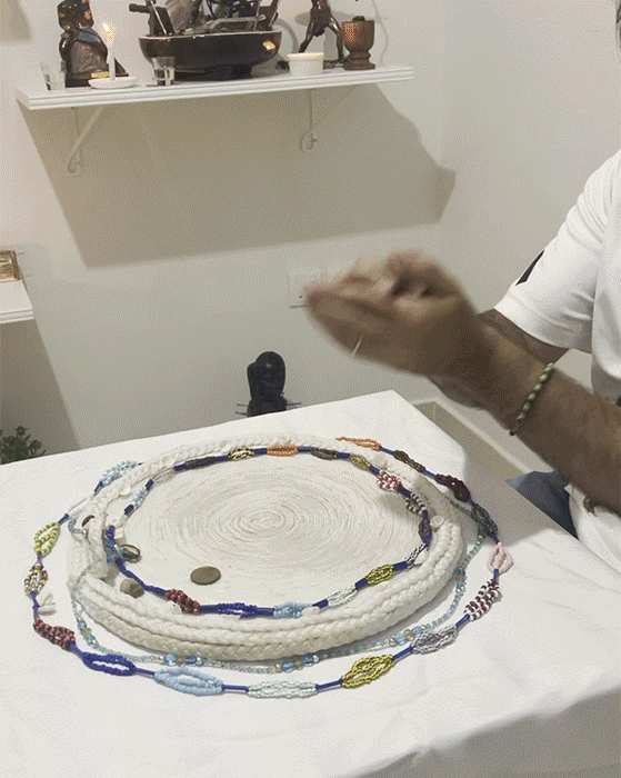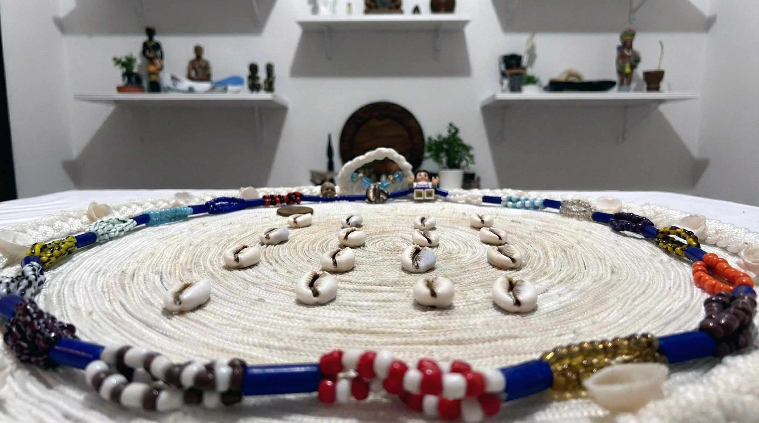 Through rituals with natural elements, symbolic offerings, and cowrie shell readings, each session invites deep self-reflection and inner balance.