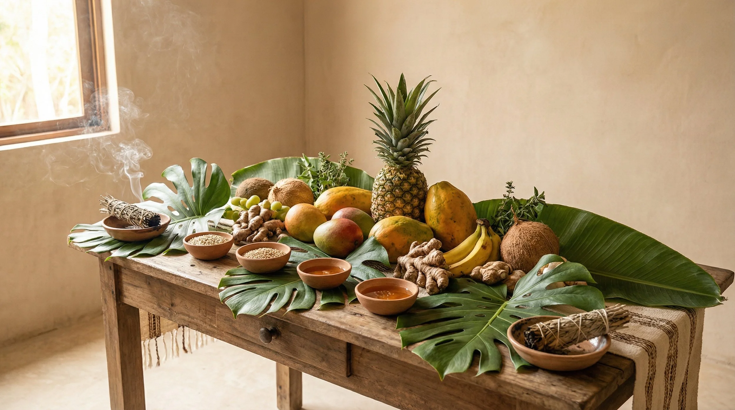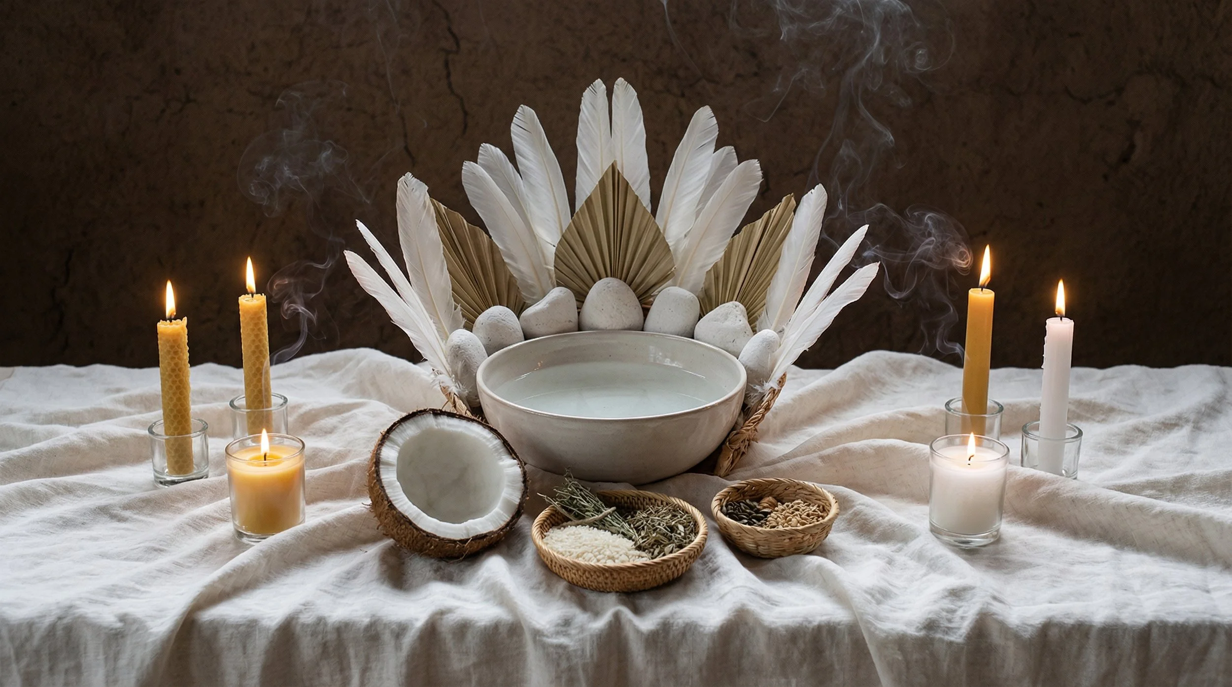 Depending on the selected ceremony level (Essential, Abundance or Full), the ritual may include symbolic head offerings, grounding elements and traditional sacred components performed respectfully and in accordance with local regulations.
